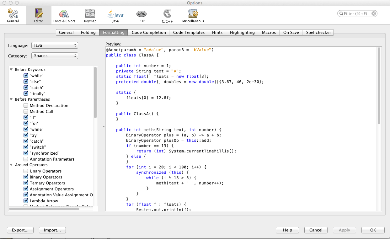 Adding consistent spacing you your code makes it much easier to read but it can be fiddly to add and consistently enforce. So I get NetBeans to worry about it. All the formatting and any auto-completion will use your settings to it is very easy to have consistent spacing across all your code with minimal effort.