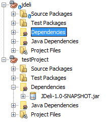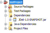 Now you can open your projects in NetBeans and they will be Maven projects. We are almost done now. See how these projects still have errors? The Jdeli project requires some external jars in order to compile and testProject needs Jdeli in order to work.