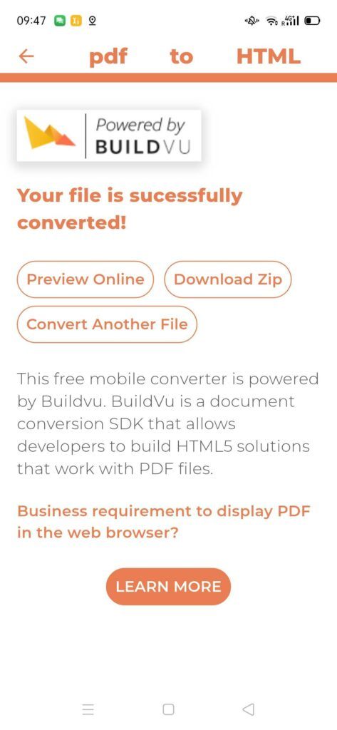5. After the file is successfully converted, you can preview online, download zip or convert another file.
