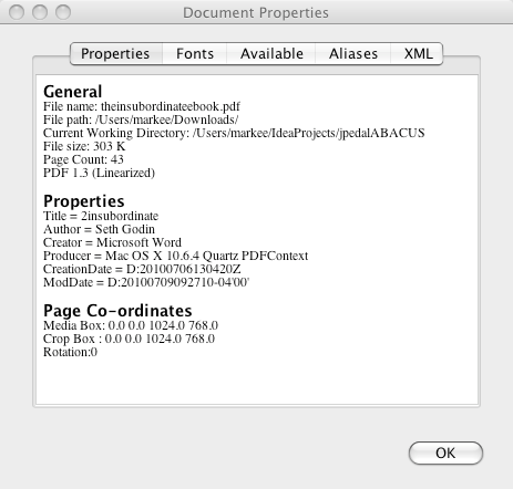 Most PDF tools have a window to display such information – here is the equivalent in JPedal PDF Viewer