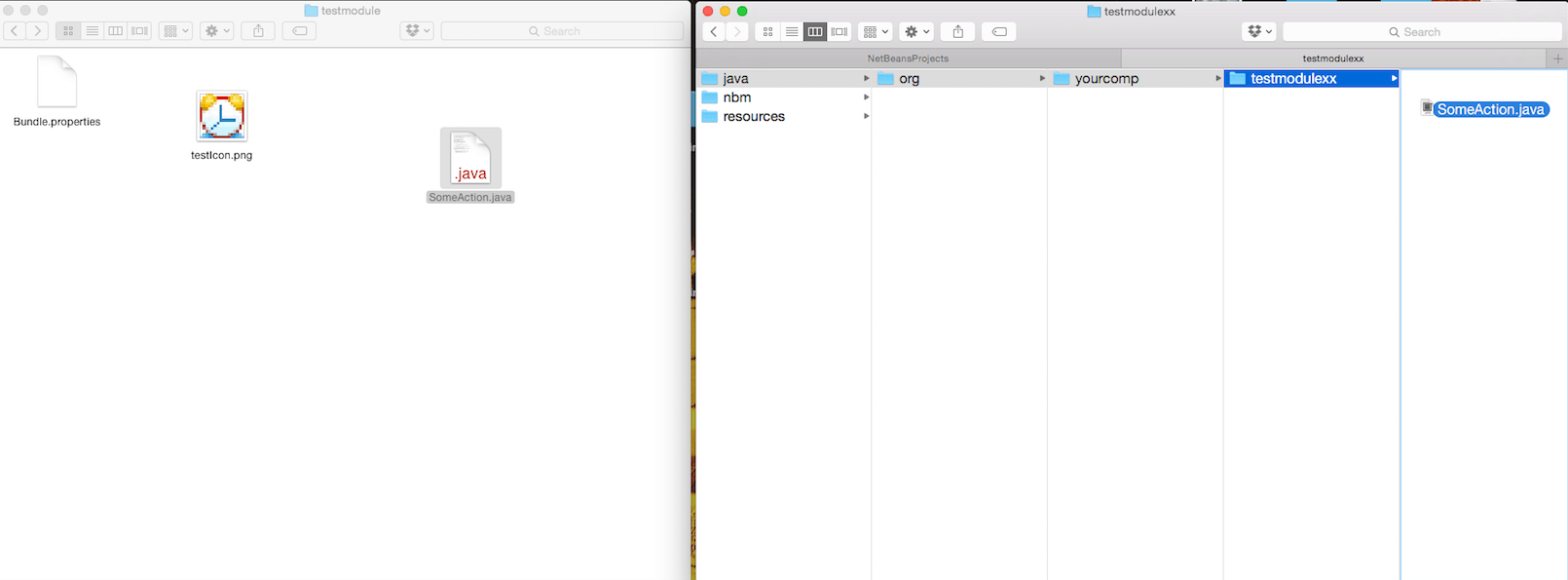 You can now copy and paste all non java files excluding Bundle.properties from TestModule/src/org/yourcomp/testmodule to TestModuleXX/src/main/resources/org/yourcomp/testmodulexx