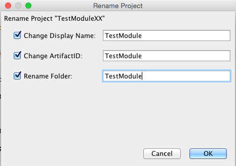 At this stage we can delete the TestMaven Project.Once done Right click on TestModuleXX in NetBeans and select Rename. You can Rename it to TestModule now.