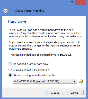 - Rename the file VirtualXPVHD so it has the extension .vhd, e.g VirtualXPVHD.vhd