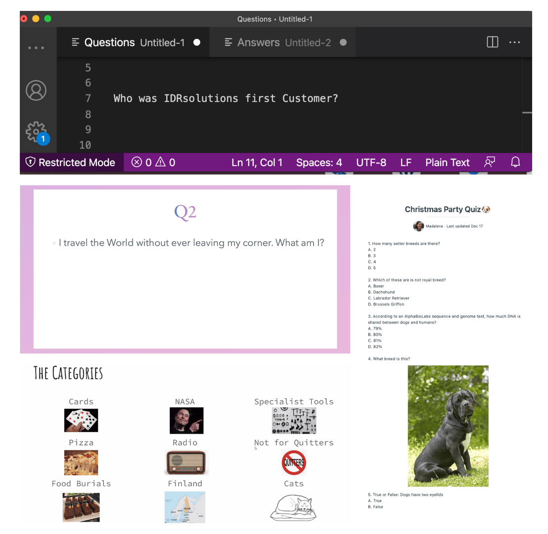 Unfortunately this year a lot of plans have had to be cancelled, postponed or altered to fit the current climate. At IDRsolutions we decided to turn our Christmas party into a virtual one in which we played games and did a big quiz. In this article I will be talking through some of the games we played and hopefully give you some inspiration for your virtual Christmas events.