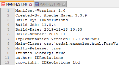 Now we have made these changes, all of our manifest files have a consistent order and fields. We have also changed our Build number to be consistent among all of our manifest files. Our manifests tell whether or not they are multi-jar. The new manifest files are as follows: