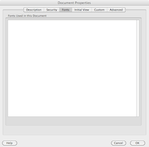 The page itself contains lots of Arabic text which the user wants to extract. The first thing to look at is whether the PDF contains any font objects. These define the text and the Encoding shows how to extract any actual text. Here is the font properties for this file in Acrobat 9.0 – as you will notice, it is empty.